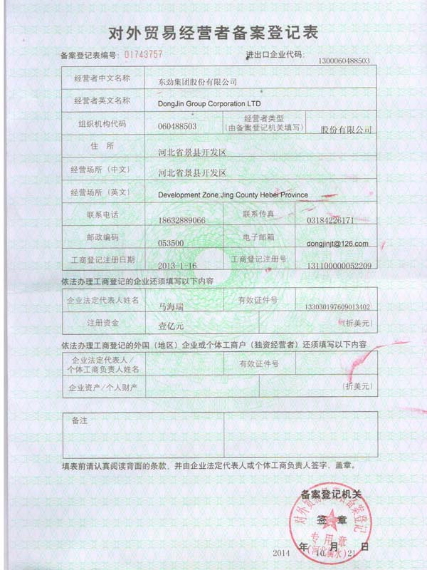 • 對外貿(mào)易備案證