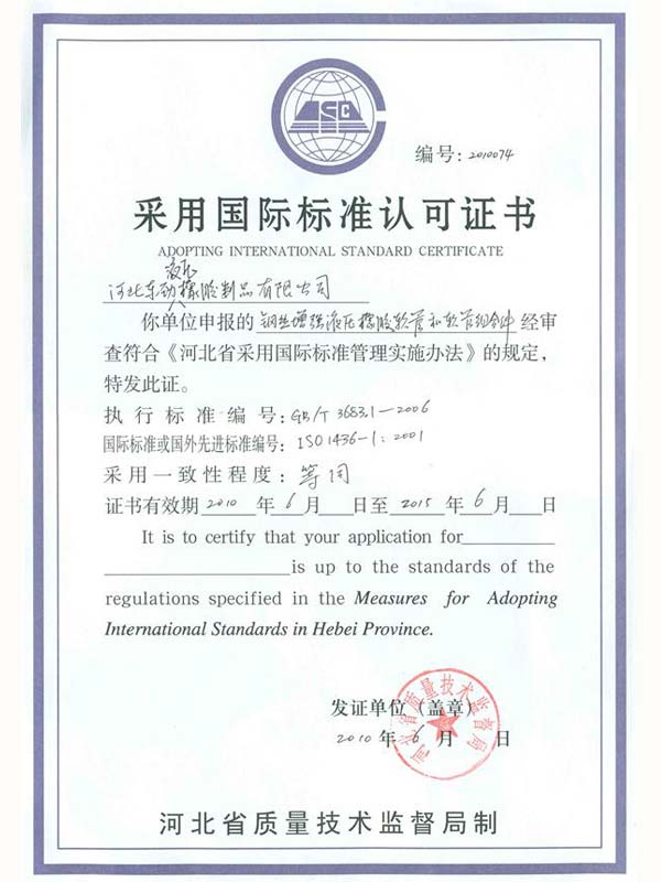 • 鋼絲編織管采用國際標(biāo)準(zhǔn)認(rèn)可認(rèn)可證書